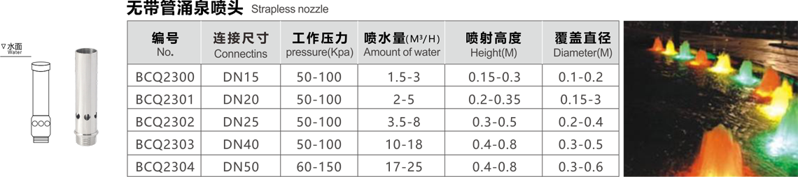 特點:噴泉時保持一定高度,水柱粗獷挺拔,涌出的水柱很壯觀,無吸氣管。