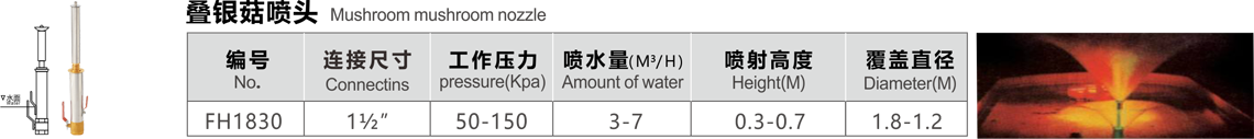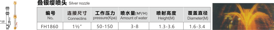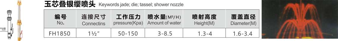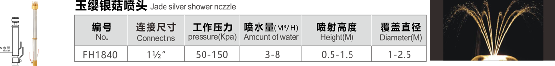 特點(diǎn):噴嘴一圈,噴水時(shí)形成一圈外向的拋物線水柱,噴水形成酷似纓穗,銀光閃閃。